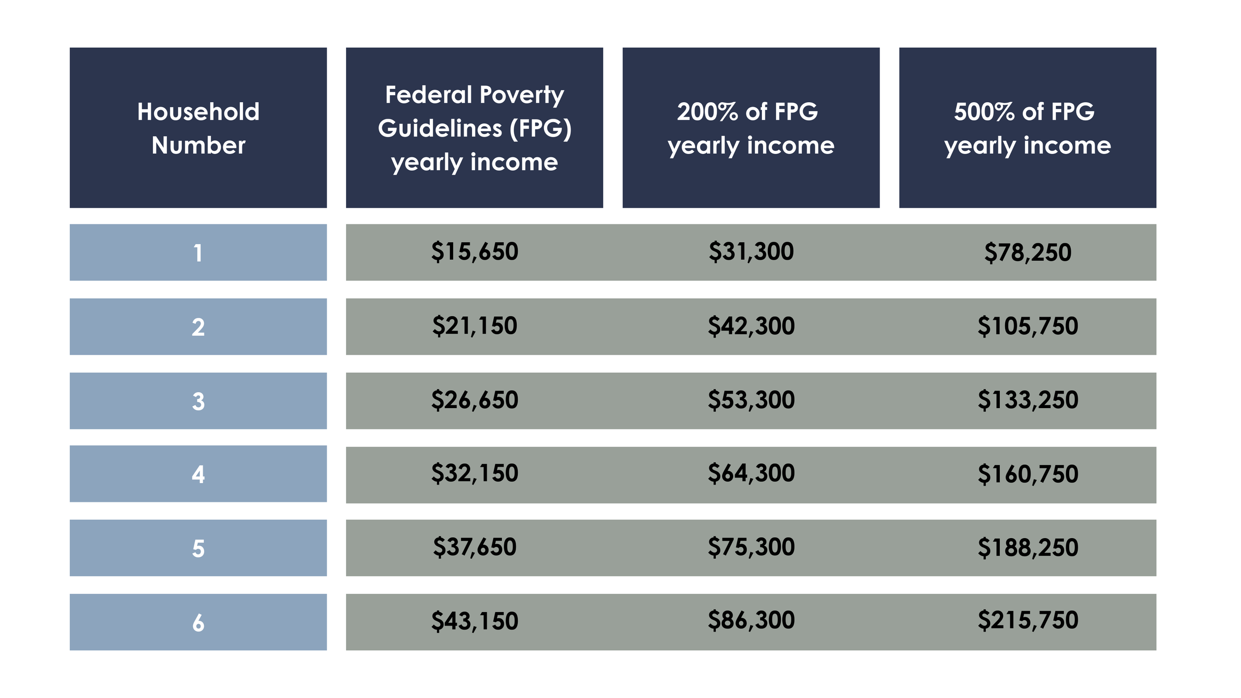 Children who are members of a household whose total annual income is at or below 200% of the Federal Poverty Level.